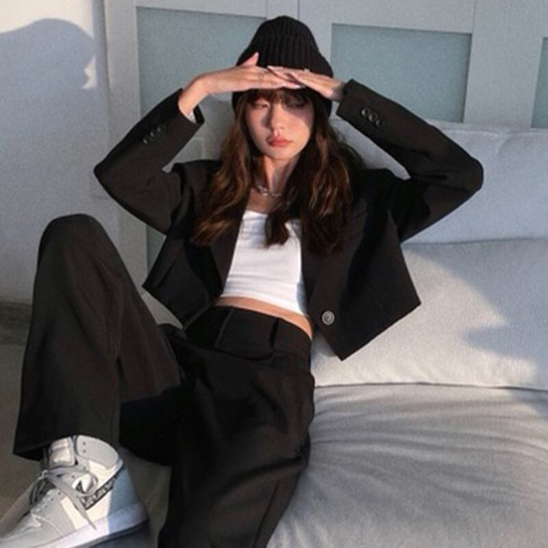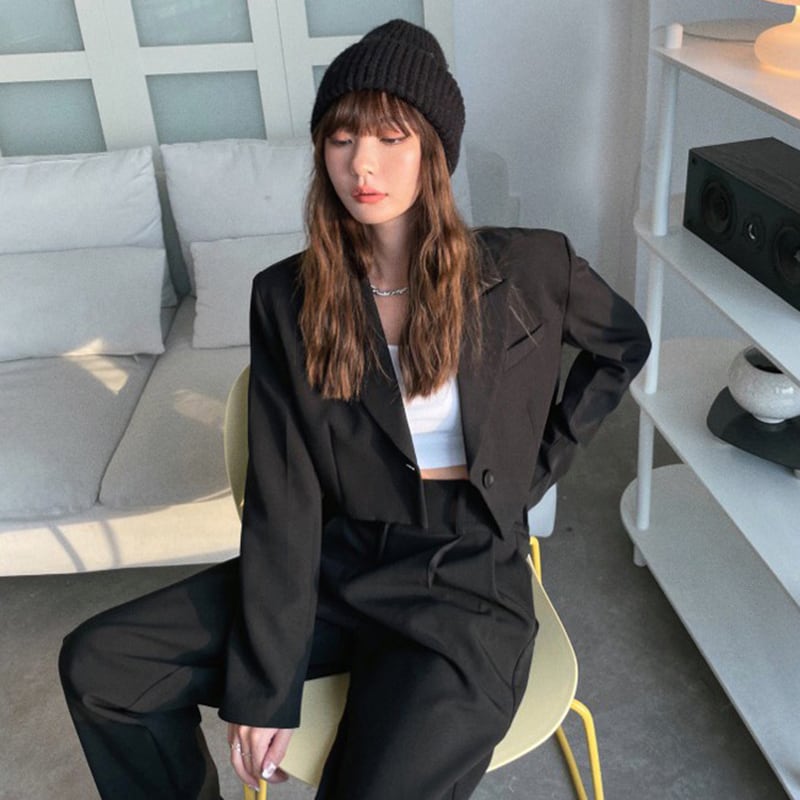 セットアップ 上下セット パンツスーツ ジャケット ショート丈 長袖 襟付き 前開き ボタン 胸ポケット ロングパンツ ハイウエスト かわいい 大人可愛い きれいめ シンプル 上品 おしゃれ かっこいい レトロ きちんと こなれ感 個性的 主役級 存在感 抜け感 オールシーズン ナチュラル ベーシック キュート クール メンズライク ガーリー レディース 女性用 学生 通学 デート お出かけ お泊まり イベント 女子会 休日 コスプレ ハロウィン レイヤード 重ね着 普段使い 着回し S M L XL