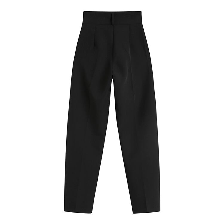ハイウエストのロングパンツは、足長効果も抜群です。