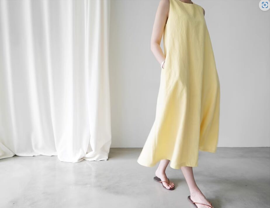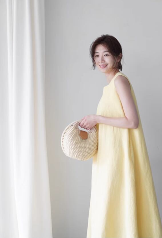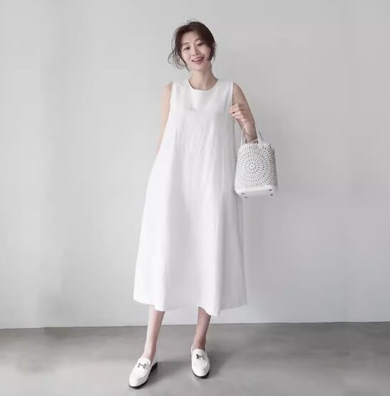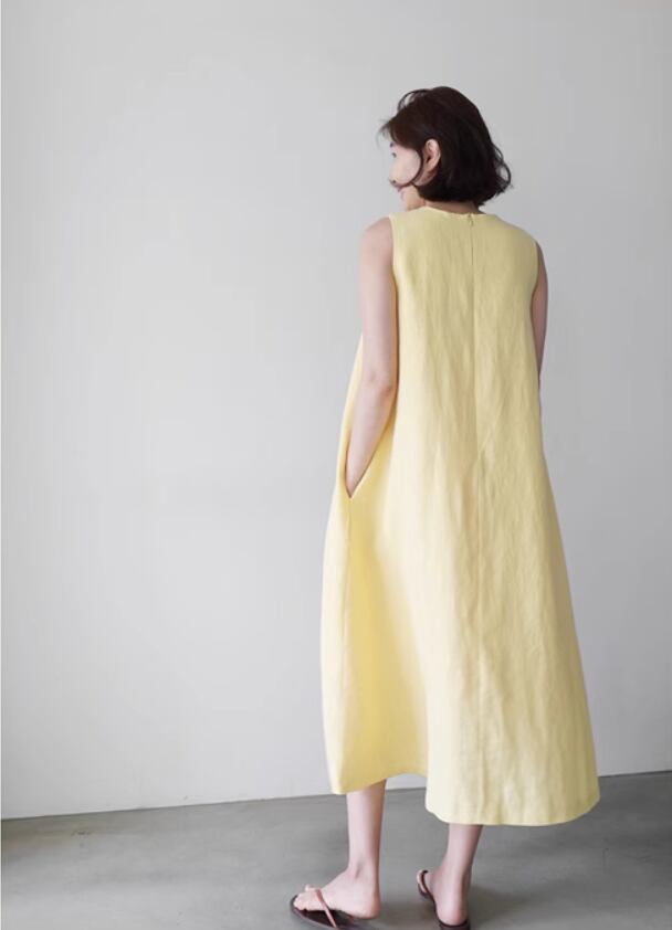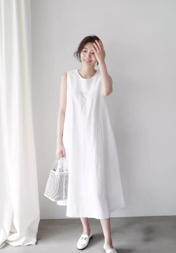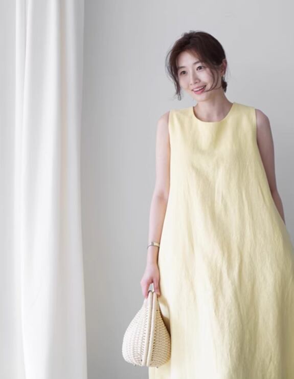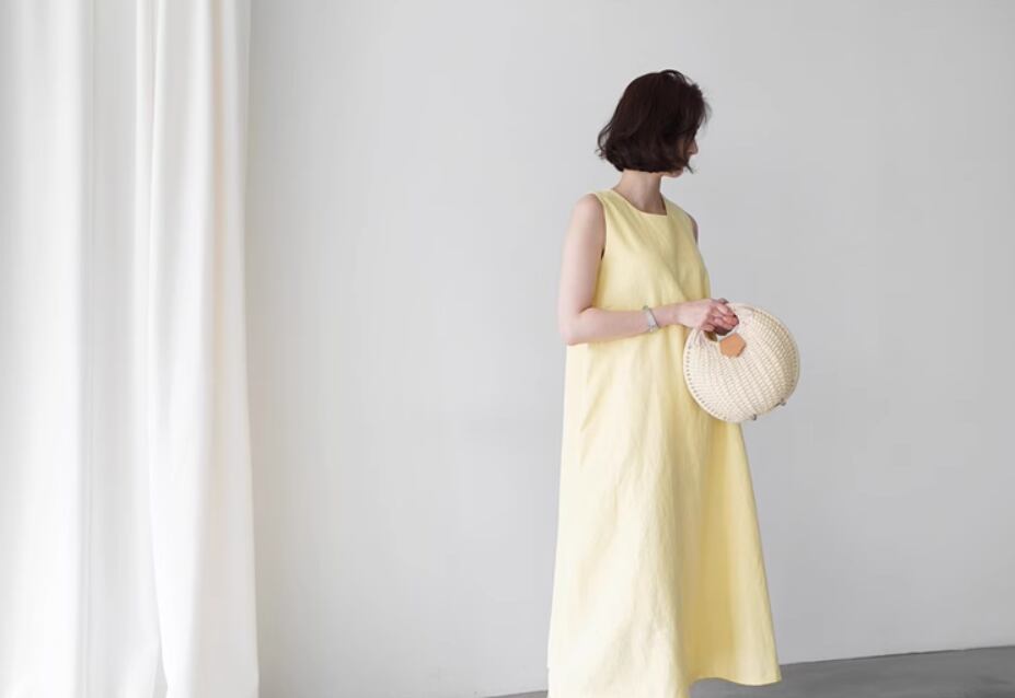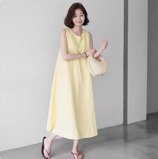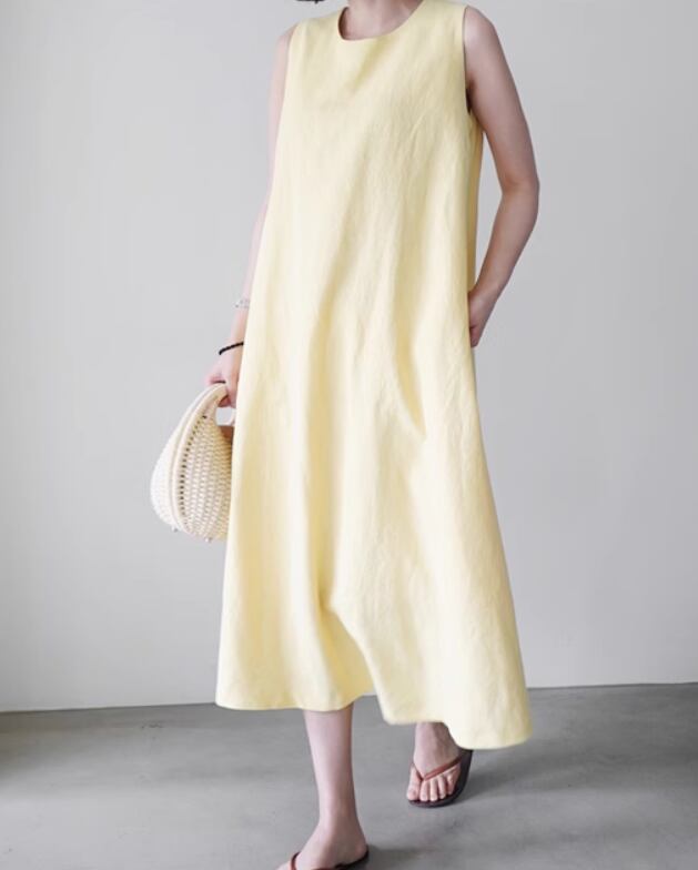 ノースリーブワンピース 袖なし ノースリーブ ラウンドネック ワイド Aライン 綿 麻 リネン シンプル カジュアル 大人 おしゃれ お洒落 無地 春 夏 20代 30代 40代 レディース 女性用 ママ マタニティ お出かけ 休日 リゾート 旅行 着回し 普段使い 重ね着 楽ちん 体型カバー S M L XL 白 ホワイト 黄色 イエロー