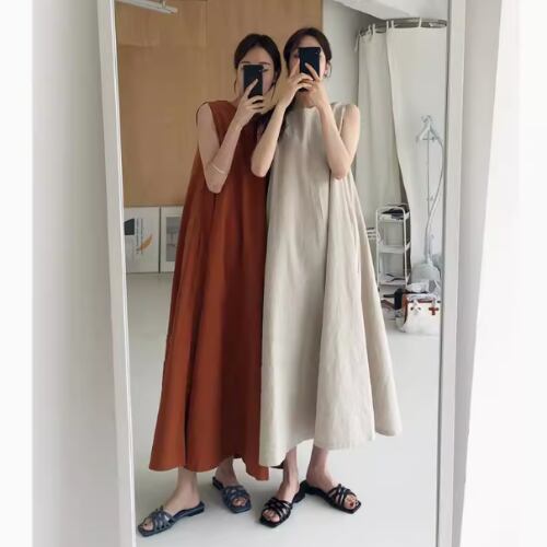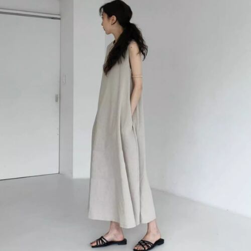 大人可愛いマキシ丈ワンピースが新登場!シンプルなデザインながらも、ノースリーブで涼しげな印象を演出。ラウンドネックと絶妙な丈感が、女性らしさを引き立てます。大人可愛いスタイルやきれいめコーディネートにもぴったりな一着です。