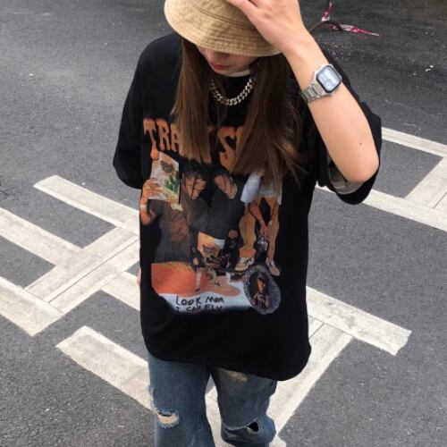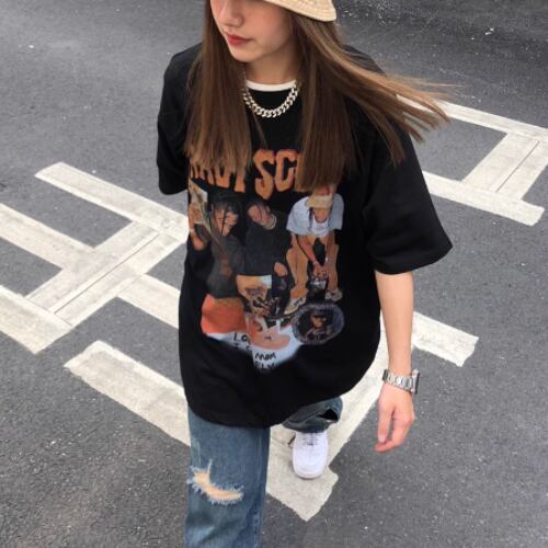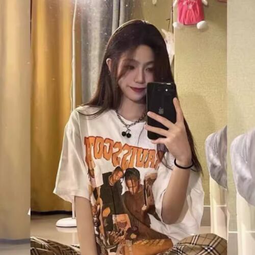 トップス Tシャツ Uネック おしゃれ お洒落 ラフ プリント 春 夏 秋 10代 20代 30代 レディース 女性用 女の子 女子会 旅行 レストラン ショッピング お揃い 双子 韓国系 M L XL 2XL 3XL 4XL 5XL 6XL ホワイト ブラック