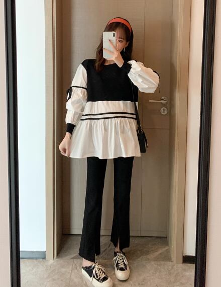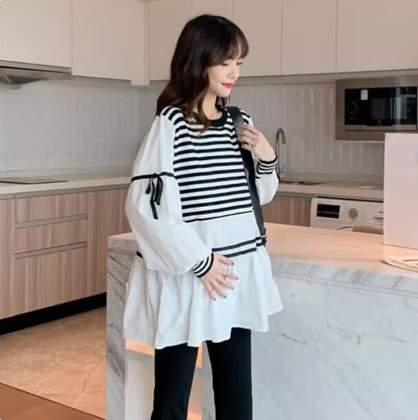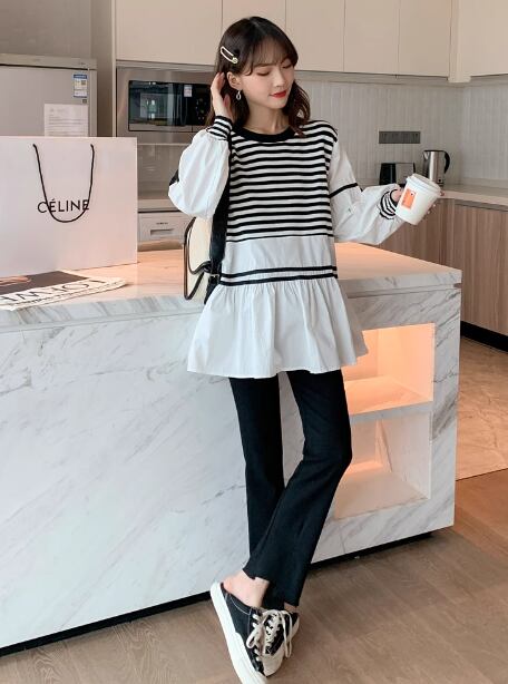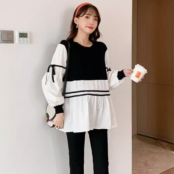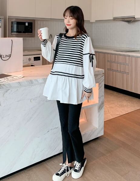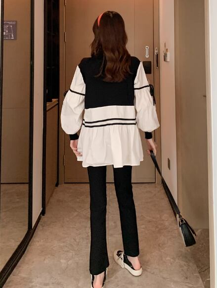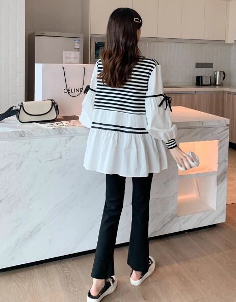 2点セット セットアップ トップス パンツ 長袖 Uネック 襟なし ブラウス かわいい 大人可愛い シンプル カジュアル おしゃれ マタニティ ママ ラフ ルーズ ナチュラル 無地 春 秋 レディース 女性用 20代 30代 デート お出かけ お泊まり 旅行 レストラン 公園 女子会 休日 ショッピング カフェ 普段使い 着回し モテ M L XL 2XL ブラック ストライプ