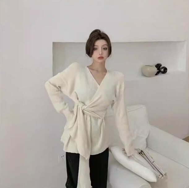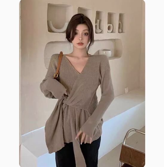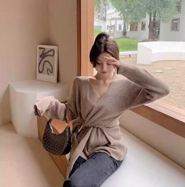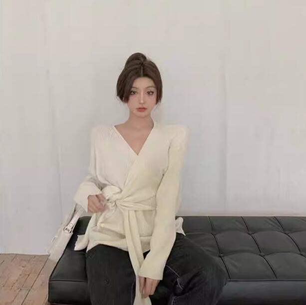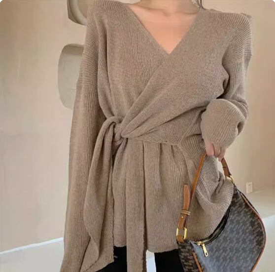 こちらはトレンドのVネックデザインが特徴的なオーバーサイズニットトップスです。ゆったりとしたシルエットが魅力で、リラックス感溢れる着心地を提供してくれます。裾のワイドなデザインが個性を引き立て、女性らしいフォーマルなスタイルからカジュアルなストリートスタイルまで幅広いコーディネートに対応します。