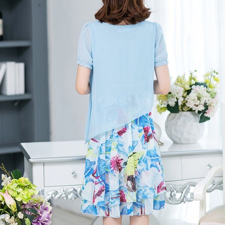 ワンピース ミディアム丈ワンピース 5分袖 ラウンドネック ミディアム丈 フレア シフォン フェイクツーピース 切り替えデザイン かわいい 大人可愛い きれいめ シンプル 上品 おしゃれ かっこいい レトロ ラフ こなれ感 個性的 主役級 存在感 抜け感 春 夏 キュート ナチュラル ベーシック 清楚 クール 花柄 レディース 女性用 ママ OL 通勤 学生 通学 デート お出かけ お泊まり イベント 女子会 休日 カフェ ショッピング レストラン コンパ レイヤード 重ね着 普段使い 着回し 脚長