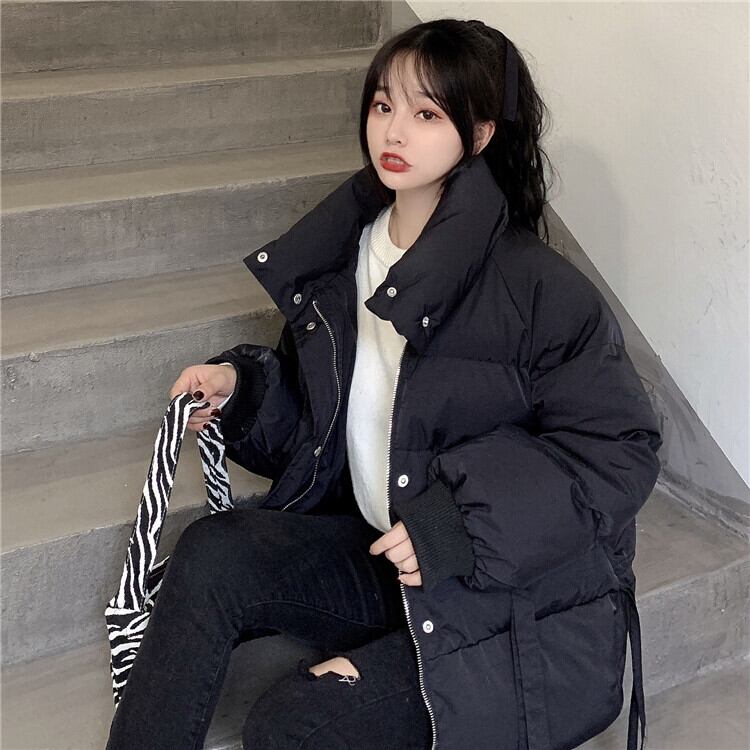 ハイネックのデザインが首元を暖かく包み、前開きのボタンとファスナーで着脱も簡単です。