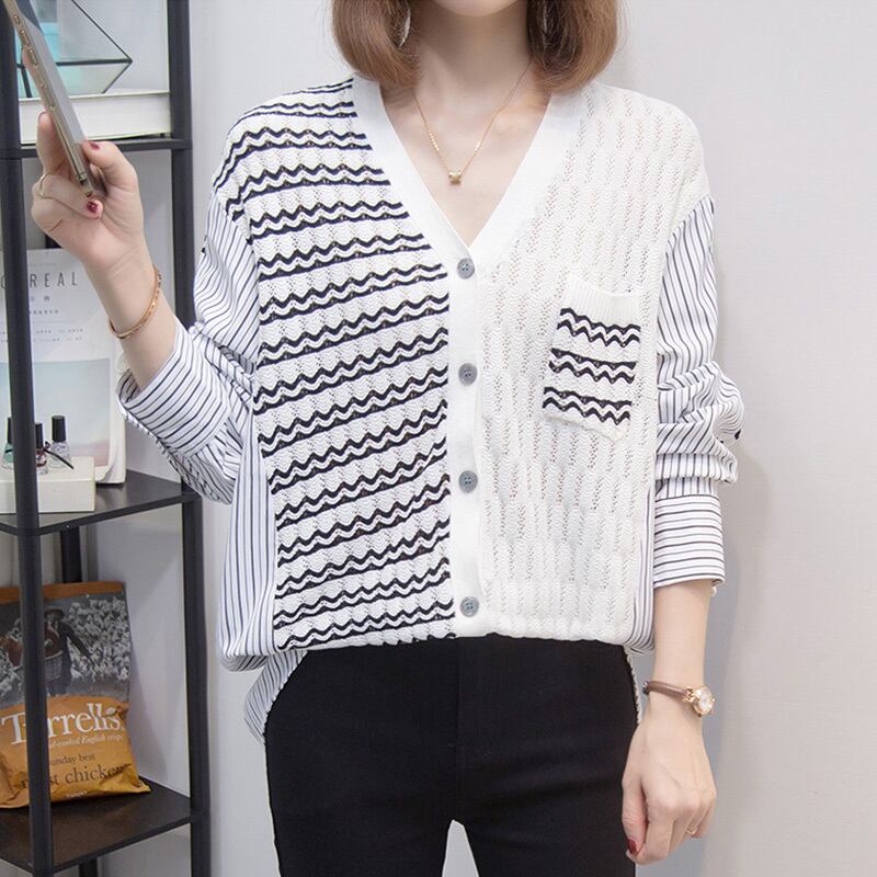 トップス シャツ ミディアム丈 長袖 Vネック 前開き ボタン 重ね着風 異素材ミックス かわいい 大人可愛い きれいめ シンプル 上品 おしゃれ かっこいい レトロ きちんと こなれ感 個性的 主役級 存在感 抜け感 オールシーズン ナチュラル ベーシック キュート クール メンズライク レディース 女性用 ママ OL 通勤 オフィス 学生 通学 デート お出かけ お泊まり イベント 女子会 休日 カフェ ショッピング レストラン コンパ レイヤード 重ね着 普段使い 着回し XL 2XL 4XL