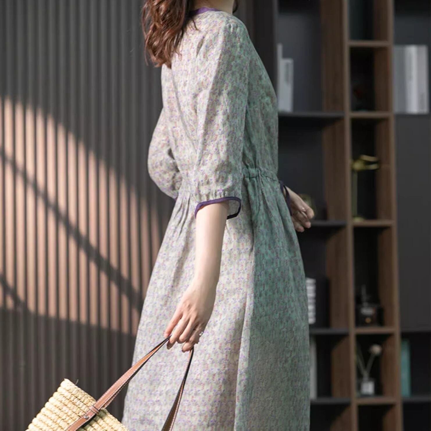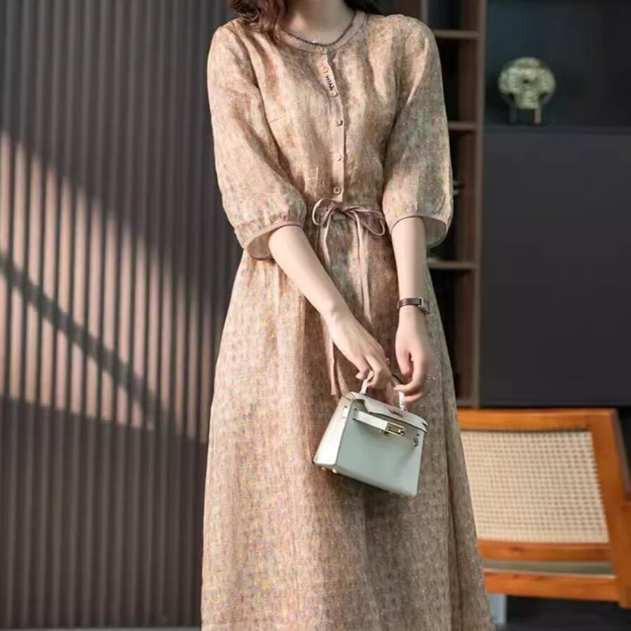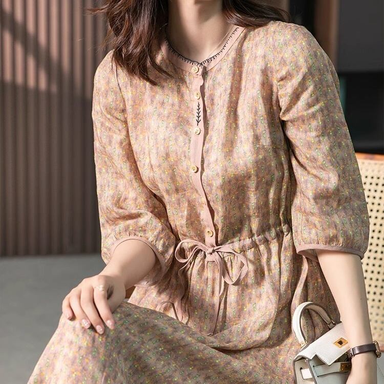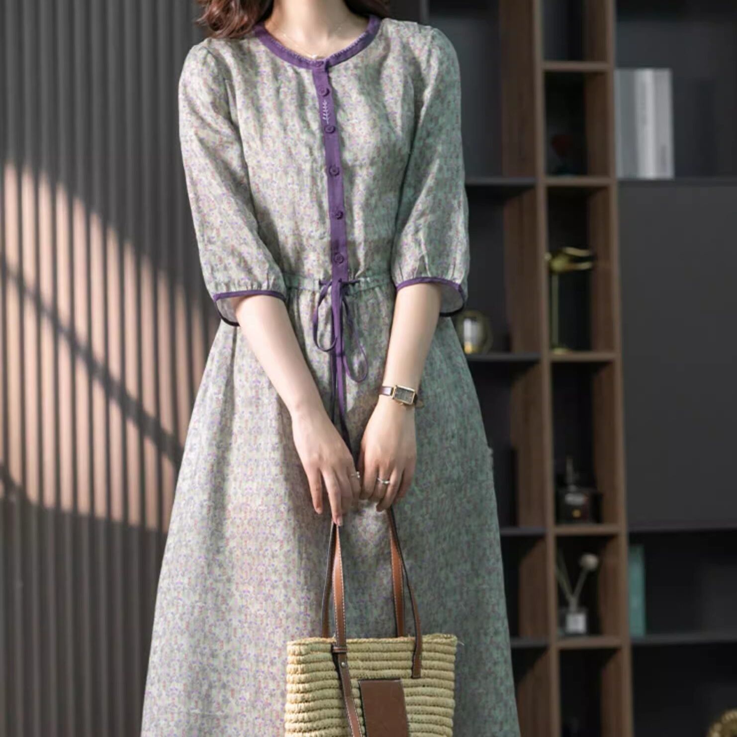 ワンピース ミディアム丈ワンピース 5分袖 ラウンドネック ミディアム丈 ウエストマーク かわいい 大人可愛い きれいめ シンプル 上品 おしゃれ かっこいい レトロ ラフ こなれ感 個性的 主役級 存在感 抜け感 春 夏 キュート ナチュラル ベーシック 清楚 クール 小花柄 レディース 女性用 ママ OL 通勤 オフィス 学生 通学 デート お出かけ お泊まり イベント 女子会 休日 カフェ ショッピング レストラン コンパ レイヤード 重ね着 普段使い 着回し 脚長 美脚 M L XL 2XL