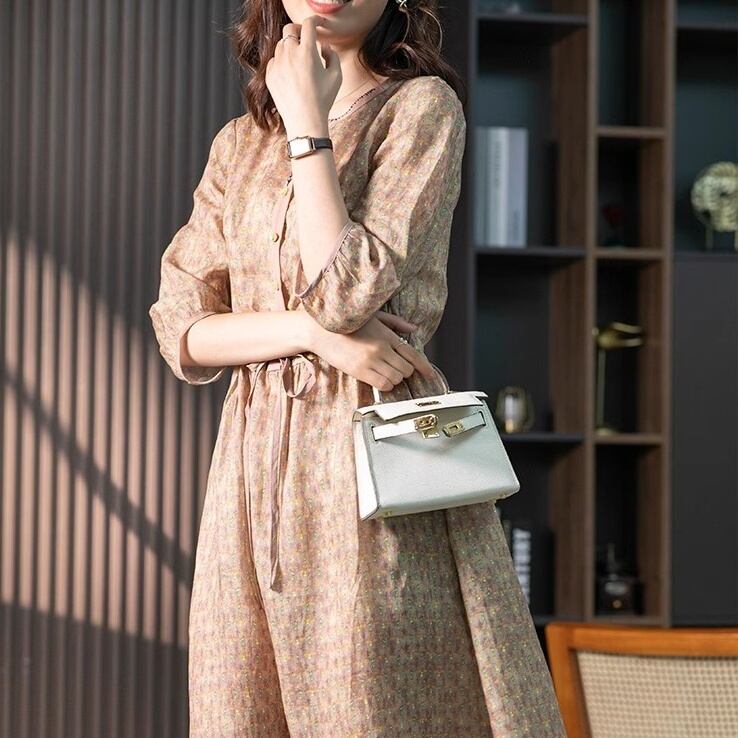 ミディアム丈で脚長効果も抜群の5分袖デザインは、春夏の女性らしい装いにぴったり。
