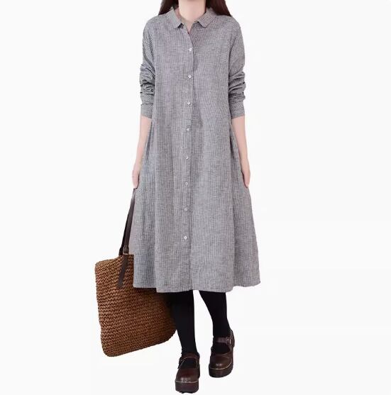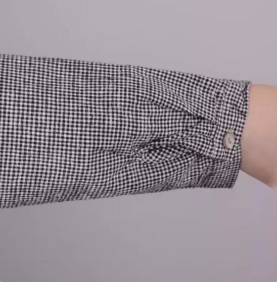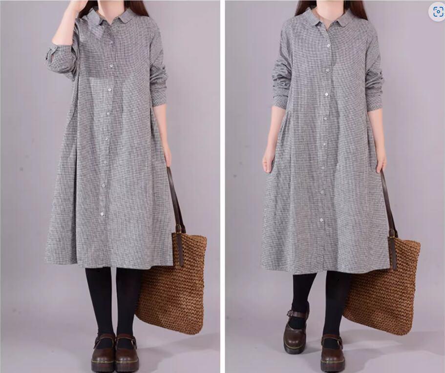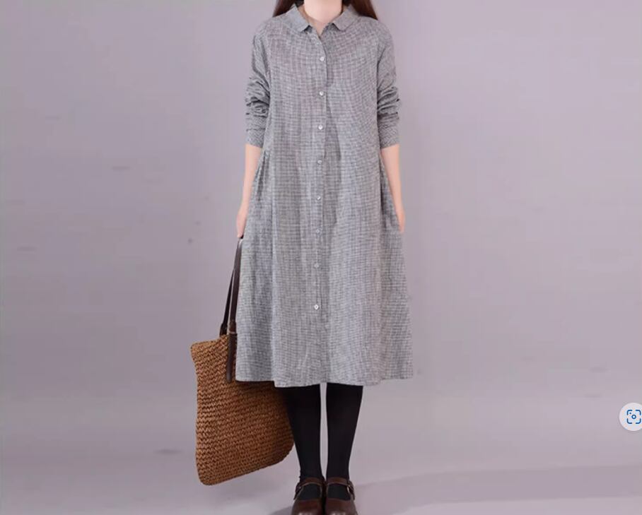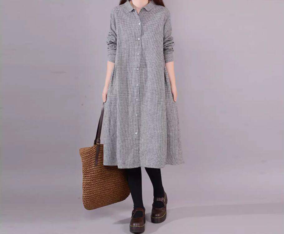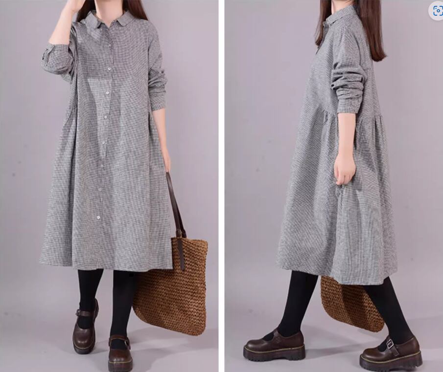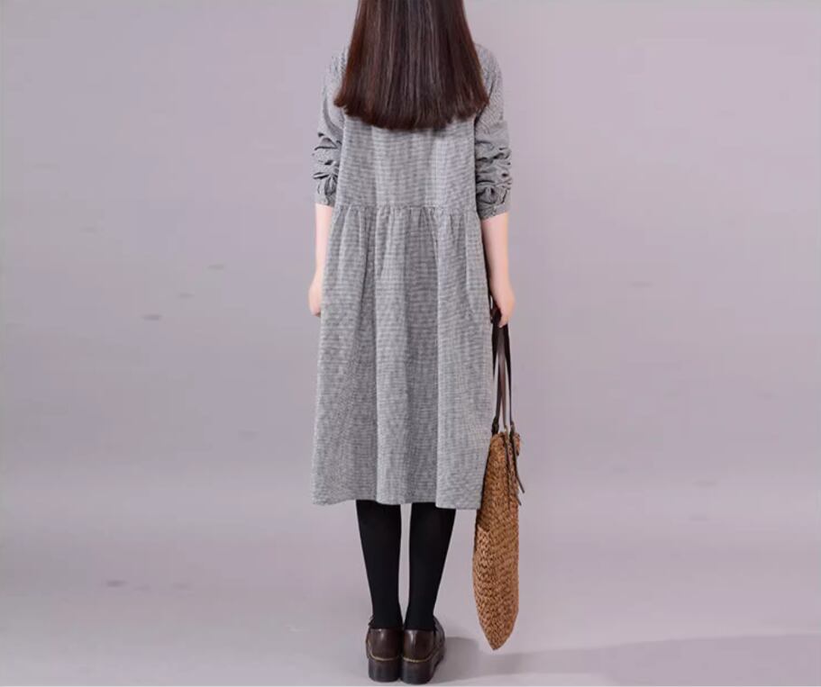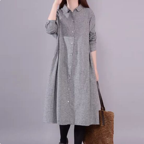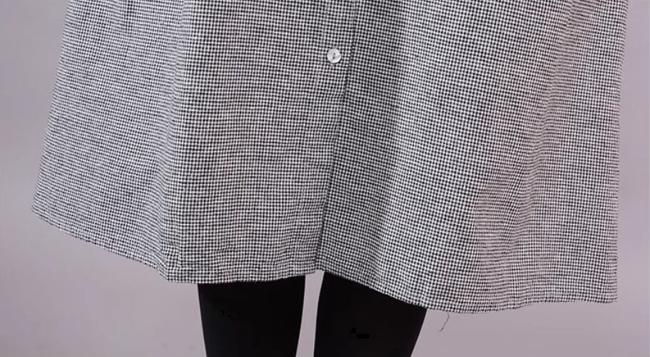 細ギンガムチェック柄シャツワンピース ひざ丈 袖あり 長袖 襟付き Aライン 切り替えデザイン ポケット かわいい 大人可愛い カジュアル おしゃれ お洒落 ガーリー チェック柄 春 秋 10代 20代 30代 レディース 女性用 デート お出かけ 休日 着回し 普段使い 重ね着 楽ちん M L XL 2XL 黒 ブラック