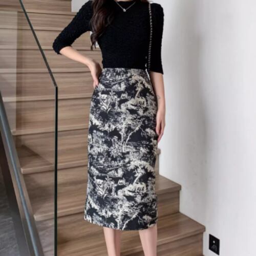 シンプルでありながら上品さとエレガンスを兼ね備えたタイトスカートが登場しました。このスカートは、体型をカバーしながら美脚効果も期待できます。