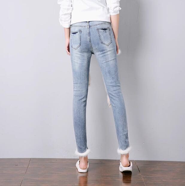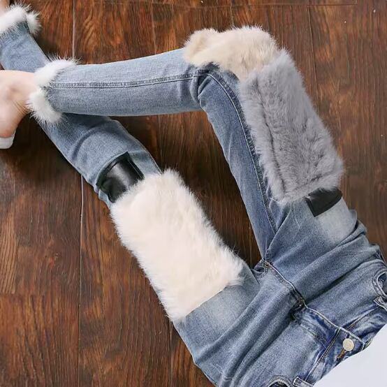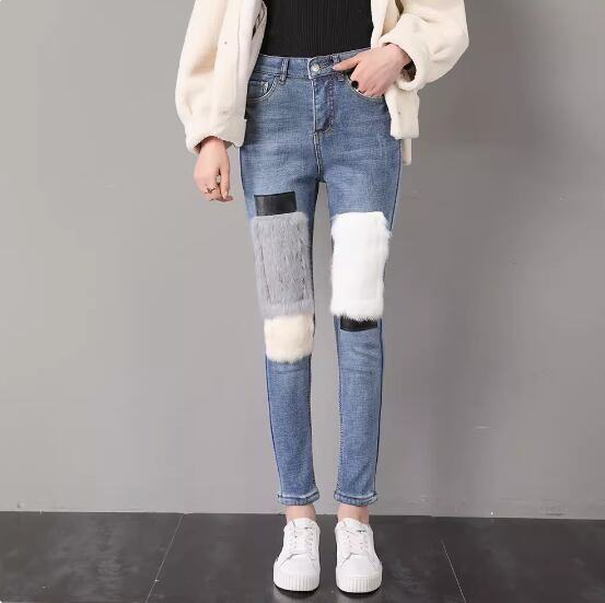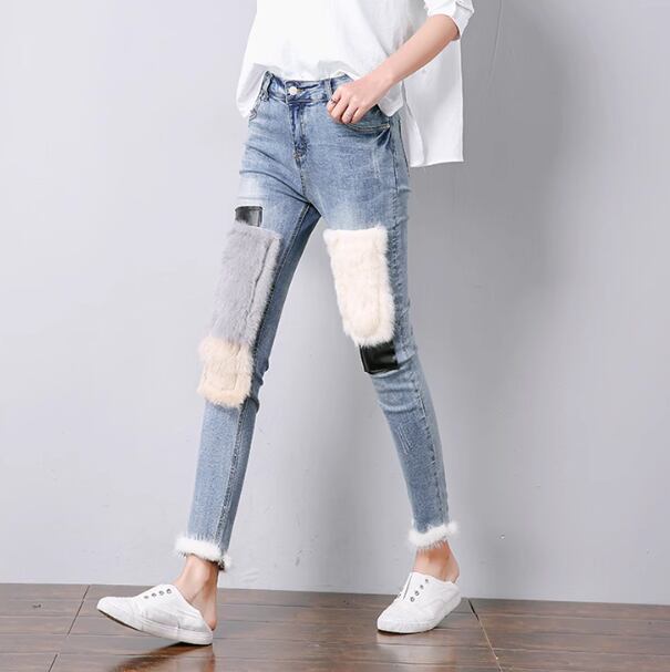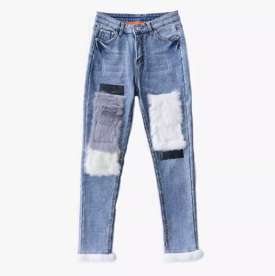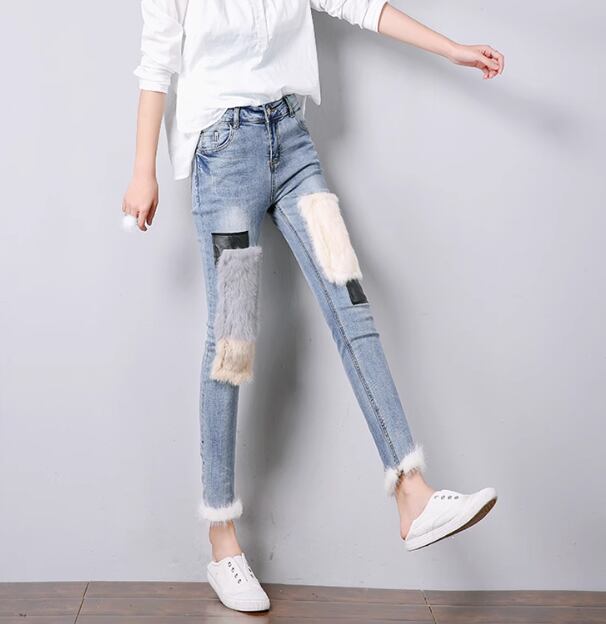 パンツ デニム デニムパンツ レディース ファー 異素材ミックス トレンド 流行 おしゃれ ボトムス ズボン ブルー