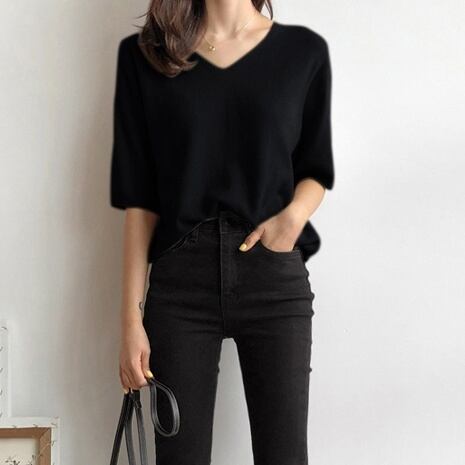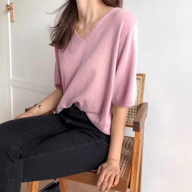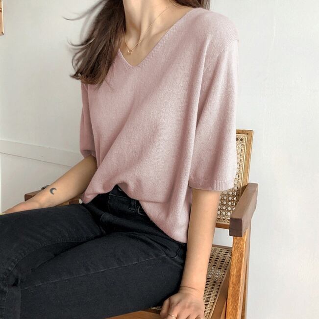 トップス セーター プルオーバー ミディアム丈 5分袖 Vネック かわいい 大人可愛い きれいめ シンプル 上品 おしゃれ かっこいい レトロ ラフ ルーズ こなれ感 個性的 主役級 存在感 抜け感 オールシーズン キュート ナチュラル ベーシック フォーマル 清楚 メンズライク レディース 女性用 ママ OL 通勤 オフィス 学生 通学 デート お出かけ お泊まり イベント 女子会 休日 アウトドア カフェ ショッピング レストラン コンパ レイヤード 重ね着 普段使い 着回し S M L XL