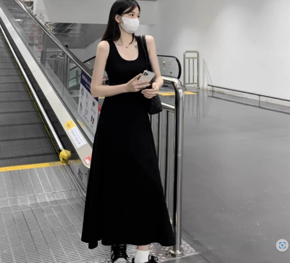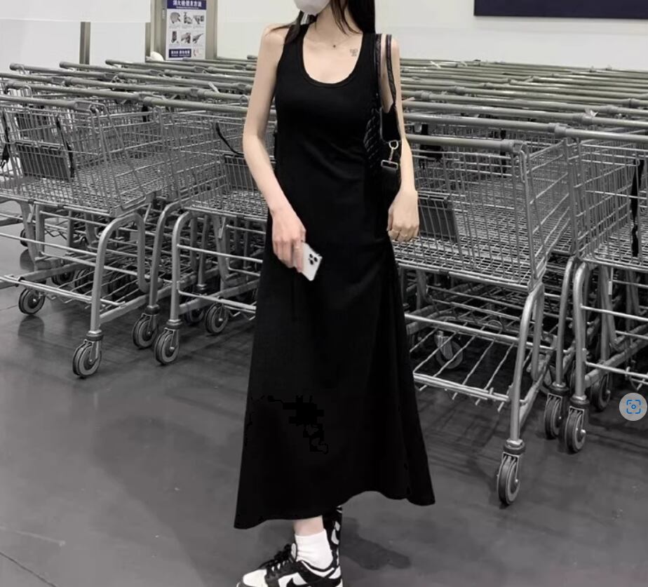 ノースリーブワンピース 袖なし ノースリーブ ラウンドネック Aライン 伸縮性 綿 シンプル カジュアル 無地 春 夏 秋 10代 20代 30代 40代 レディース 女性用 ママ マタニティ お出かけ 休日 旅行 着回し 普段使い 重ね着 楽ちん 体型カバー S M L XL 2XL 黒 ブラック