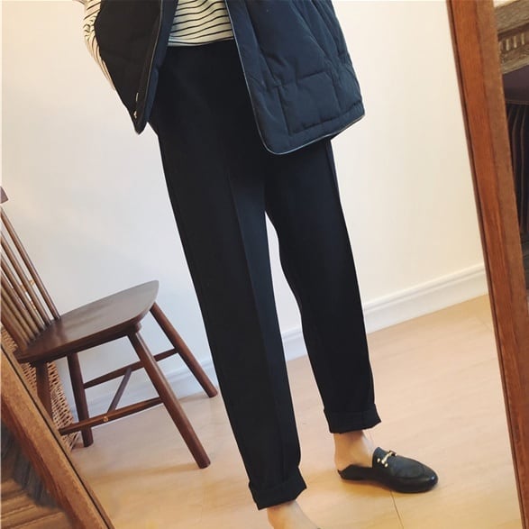 ロールアップが施されたアンクル丈は、大人可愛いスタイリングにぴったり。