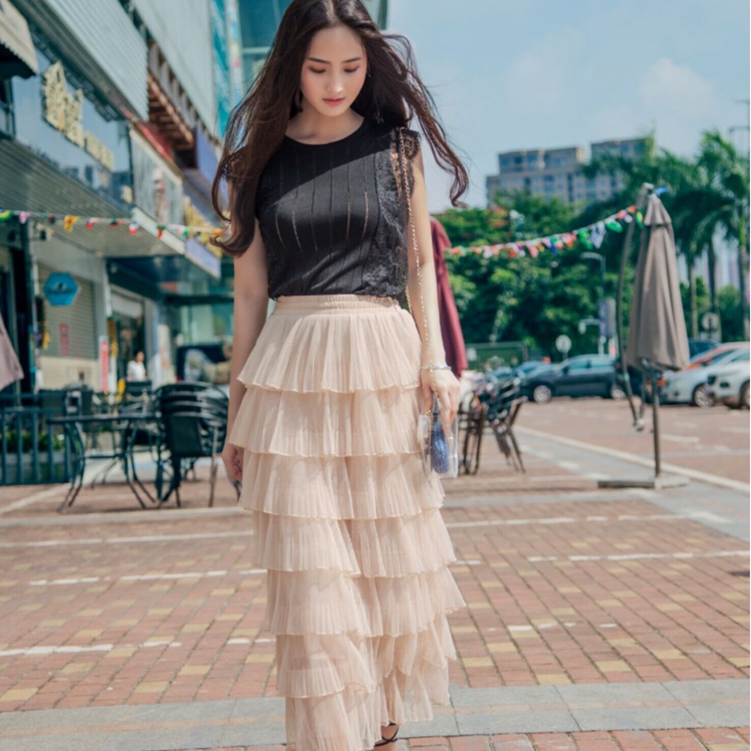 レディース スカート ケーキスカート ミモレ スリム 細身 ストレート シフォン ハイウエスト ウエストゴム かわいい 大人可愛い きれいめ シンプル カジュアル 上品 おしゃれ レトロ ガーリー エレガント ラブリー キュート クラシカル 無地 春 秋 通勤 学生 学校 通学 デート お出かけ パーティー イベント 女子会 韓国 普段使い 着回し モテ トレンド 流行 インスタ映え フリーサイズ ホワイト ブラック グレー アプリコット