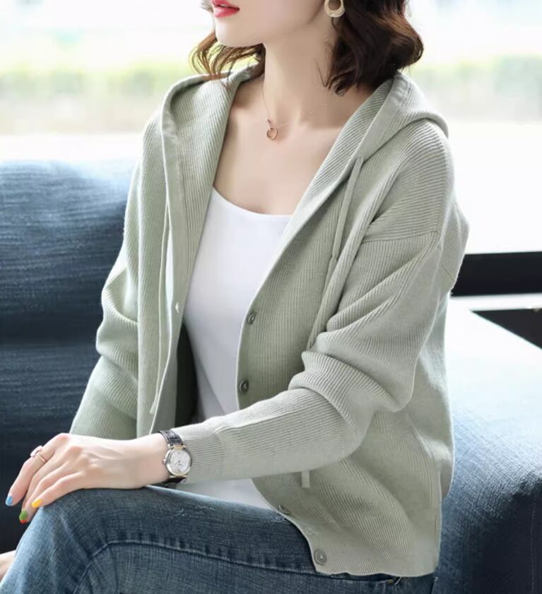 リブニットパーカー 白トップス 袖あり 長袖 ドロップショルダー ストレート フード付き 前開き 伸縮性 シンプル カジュアル 大人 上品 おしゃれ お洒落 無地 春 秋 10代 20代 30代 40代 レディース 女性用 ママ お出かけ 休日 着回し 普段使い 重ね着 楽ちん M L XL 2XL 白 ホワイト 緑 グリーン