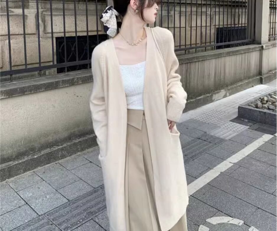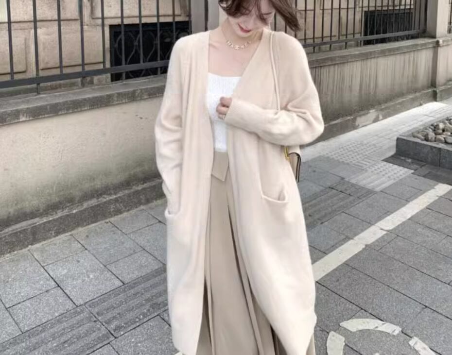 ふっくら厚みのある生地が大人可愛いロングニットカーディガン