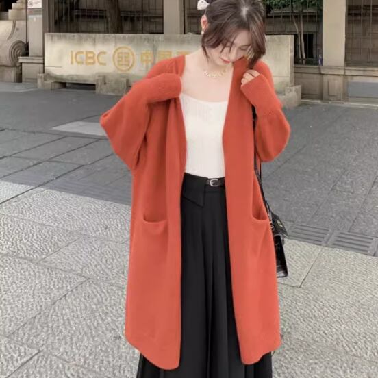 前開きロングニットカーディガン 長袖 ワイド ポケット 伸縮性 ニット 大人可愛い きれいめ カジュアル 大人 上品 おしゃれ お洒落 大人女子 こなれ感 無地 春 秋 10代 20代 30代 40代 レディース 女性用 ママ マタニティ デート お出かけ 休日 旅行 着回し 普段使い 重ね着 楽ちん 体型カバー S M L オフホワイト レンガ