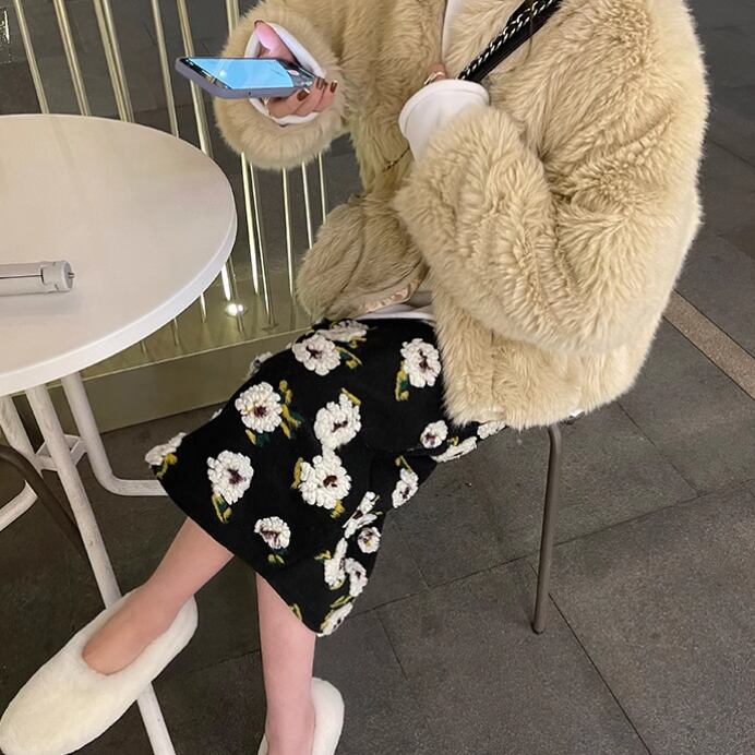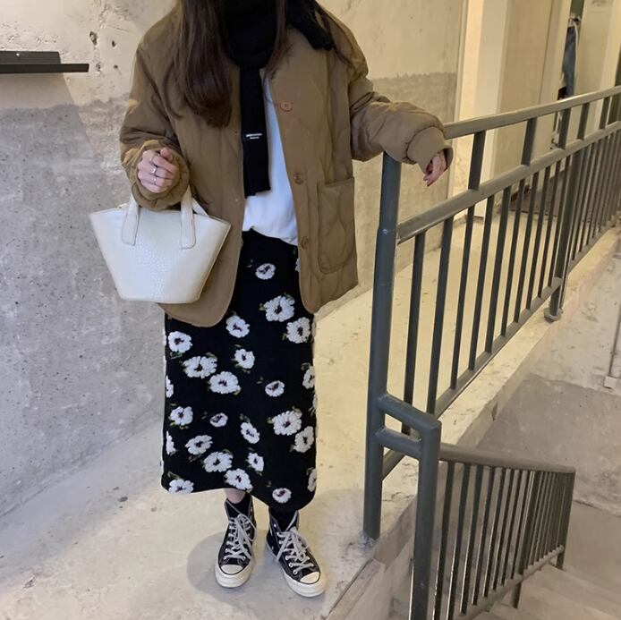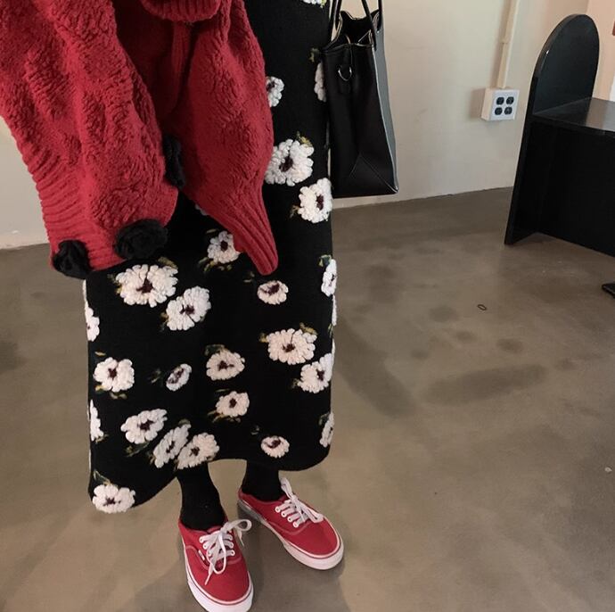 ボトムス スカート ミモレ丈スカート ニットスカート 花柄 ミモレ丈 かわいい 大人可愛い きれいめ シンプル カジュアル 上品 おしゃれ かっこいい 大人女子 こなれ感 個性的 レトロ きちんと 主役級 存在感 キュート クール ナチュラル ベーシック クール 秋 冬 レディース 女性用 ママ OL 通勤 オフィス 学生 通学 デート お出かけ お泊まり イベント 女子会 休日 カフェ ショッピング 旅行 リゾート 普段使い 着回し 脚長 楽ちん ブラック L XL 2XL 3XL 4XL