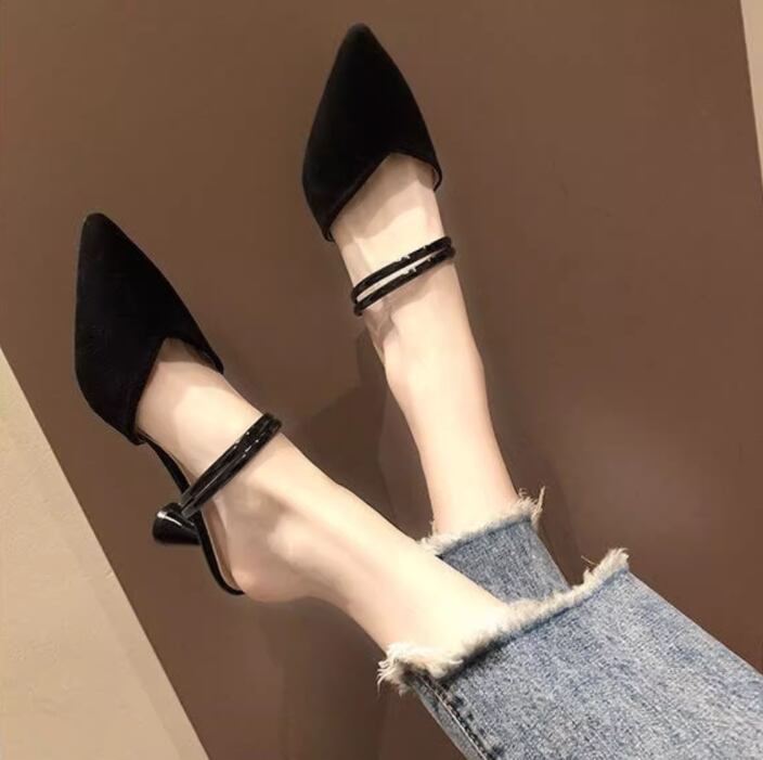 ポインテッドトゥとストラップが特徴的なこのパンプスは、7cmの太ヒールで歩きやすさも追求しました。大人っぽいデザインながらも上品さが漂うため、オフィスやビジネスシーンにもぴったりです。さらに、各サイズ展開もあるので、お好みのサイズが必ず見つかります