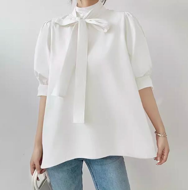 ブラウス レディース トップス 5分袖 ボウタイブラウス 春 秋 ボウタイリボン 大きいサイズ オフィス 通勤服 白 スーツ インナー かわいい 大人可愛い 上品 M L XL ホワイト ブラック ピンク アプリコット カーキ