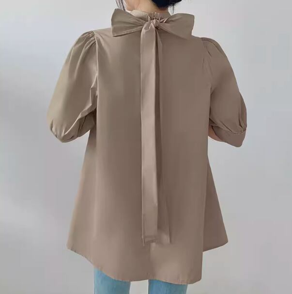 このブラウスは、5分袖で大人可愛い印象を与えるアイテムです。オフィスや通勤服にぴったりな上品なデザインで、ボウタイリボンがアクセントとなります。白、ブラック、ピンク、アプリコット、カーキの豊富なカラーバリエーションも魅力的。大きいサイズも取り揃えております。しっかりとした素材で着心地も抜群です。