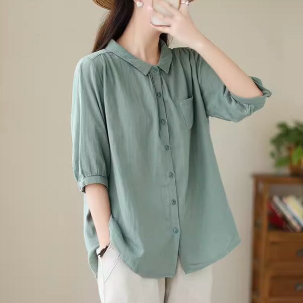 おしゃれなOLさん必見のブラウスシャツが入荷しました。このシャツは、シンプルで清潔感のある無地デザインが特徴。大人可愛い雰囲気を演出しながら、きれいめカジュアルスタイルも叶えます。チュニックのようなロング丈で、体型をカバーしつつも女性らしいシルエットを作り出します。通勤やデート、お出かけ、女子会など、様々なシーンで活躍してくれる一枚です。6色展開で、Mから2XLまでのサイズ展開も豊富に揃えております。大きいサイズもお求めやすい価格でご用意していますので、ぜひお気に入りの一枚を見つけてくださいね。