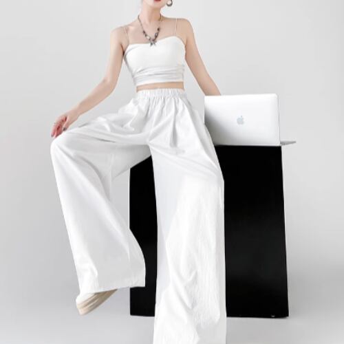 ハイウエストで脚を長く見せ、足首まで広がるドレープ感のあるデザインが、女性らしさと抜け感を演出してくれます。薄手の生地は通気性があり、夏の暑さでも快適に穿けます。