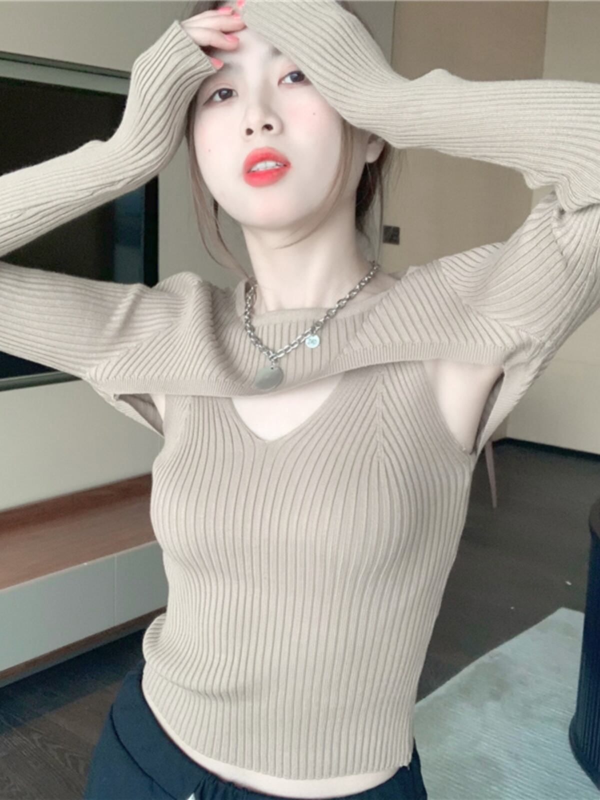 レディース トップス カットソー ニット デート 袖あり 長袖 萌袖 ラウンドネック クルーネック 襟なし スリム タイト 細身 リブ かわいい 大人可愛い きれいめ シンプル カジュアル 上品 おしゃれ お洒落 レトロ 大人女子 こなれ感 ラフ ラブリー キュート ガーリー 個性的 クール モード系 エレガント モダン 主役級 存在感 抜け感 レディース デート お出かけ 女子会 休日 着回し 普段使い ファッション コーデ スタイル モテ プレゼント 定番 トレンド インスタ映え 色展開