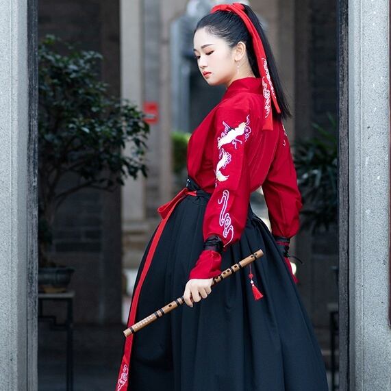 長袖の上着と袴風スカートの組み合わせは、古代中国の雰囲気を演出してくれます。