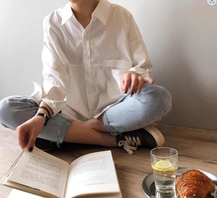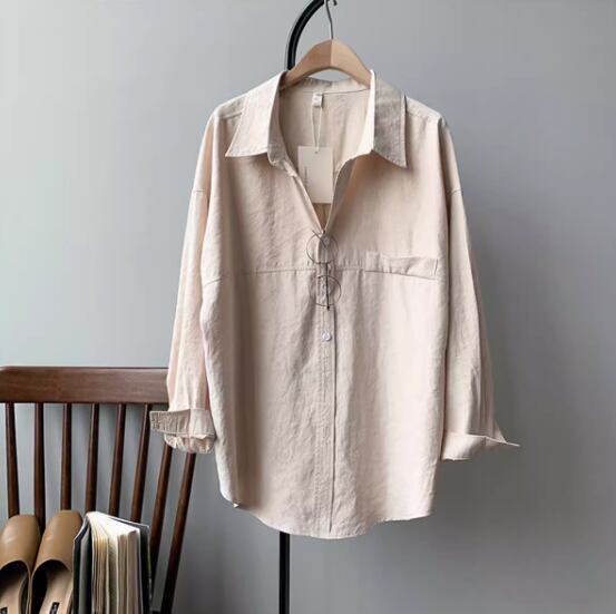 しっかりめの綿生地できちんと感のある着こなしが叶う長袖ブラウス