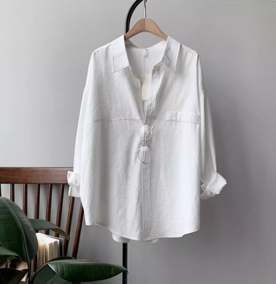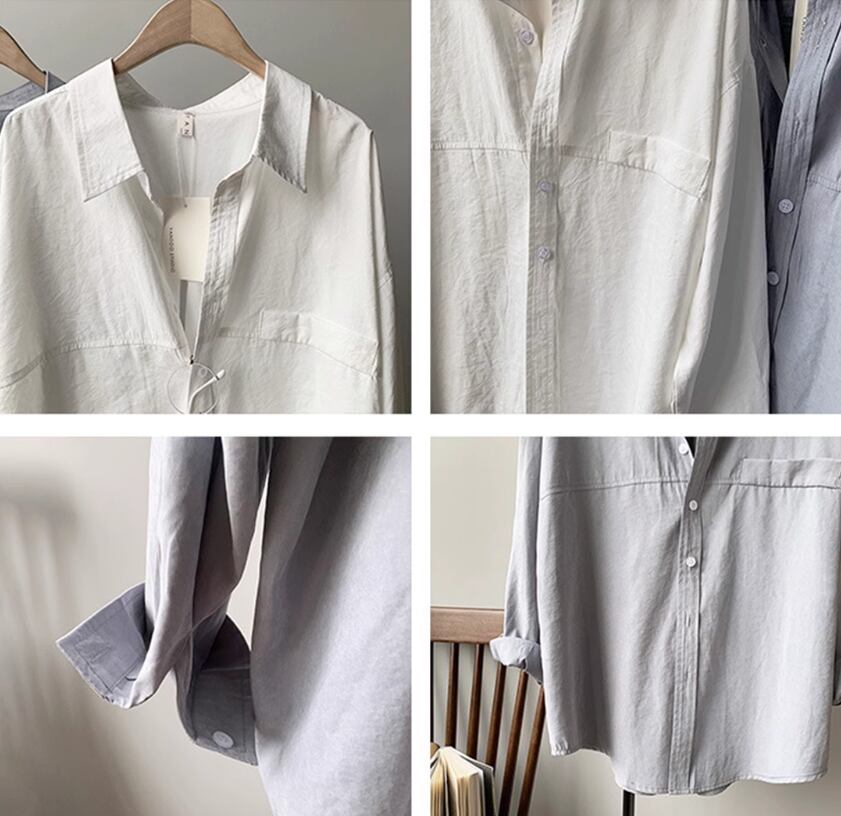 トップス シャツ ブラウス 白シャツ 白トップス 長袖 ドロップショルダー 襟付き ストレート 切り替えデザイン シンプル カジュアル 大人 上品 おしゃれ お洒落 無地 春 夏 秋 10代 20代 30代 40代 レディース 女性用 ママ お出かけ 休日 着回し 普段使い 重ね着 体型カバー 定番 S M L 白 ホワイト ベージュ グレーブルー