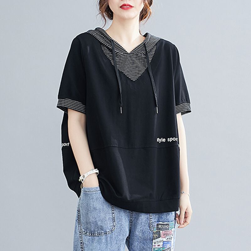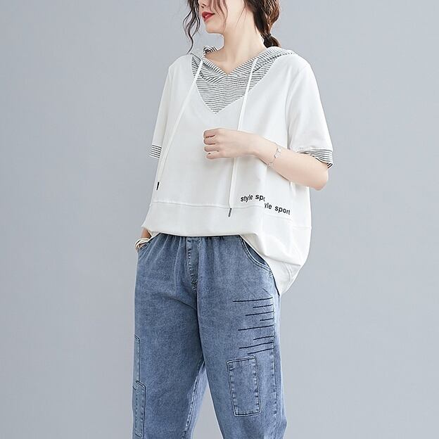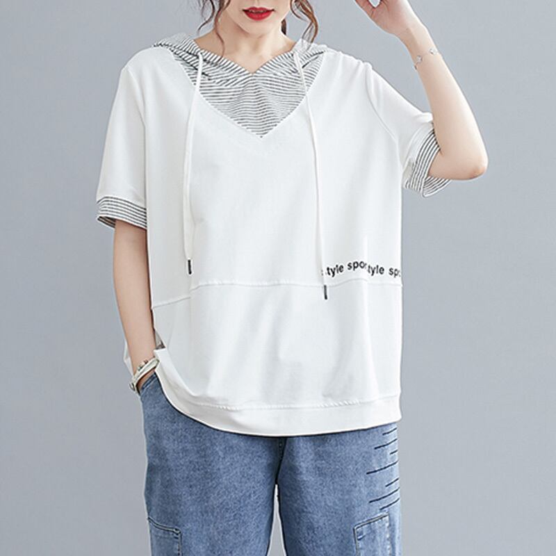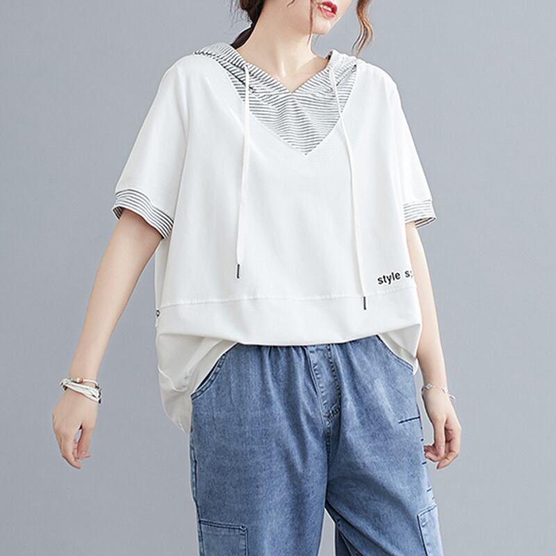 トップス カットソー ミディアム丈 プルオーバー 半袖 フード付き 重ね着風 かわいい 大人可愛い きれいめ シンプル 上品 おしゃれ かっこいい レトロ ラフ ルーズ きちんと こなれ感 個性的 主役級 存在感 抜け感 春 夏 ナチュラル ベーシック キュート クール メンズライク 無地 レディース 女性用 OL 通勤 学生 通学 デート お出かけ お泊まり イベント 女子会 休日 アウトドア カフェ ショッピング レストラン コンパ レイヤード 重ね着 普段使い 着回し M L XL ゆったり 楽ちん