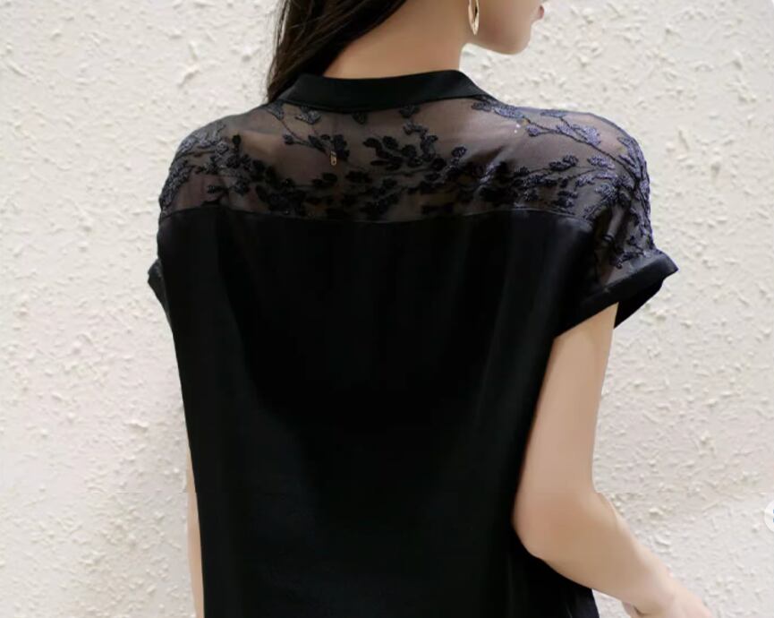 透け感のあるレースデザインが大人可愛い半袖ブラウス