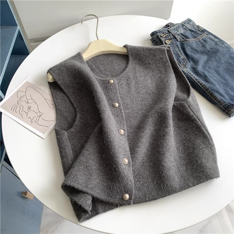 トップス ベスト ニットベスト ミディアム丈 ラウンドネック ニット 前開き デザインボタン かわいい 大人可愛い きれいめ シンプル 上品 おしゃれ かっこいい レトロ ラフ ルーズ きちんと こなれ感 個性的 主役級 存在感 抜け感 オールシーズン ナチュラル ベーシック クール メンズライク 無地 レディース 女性用 OL 通勤 学生 通学 デート お出かけ お泊まり イベント 女子会 休日 アウトドア カフェ ショッピング レストラン コンパ レイヤード 重ね着 普段使い 着回し ワンサイズ