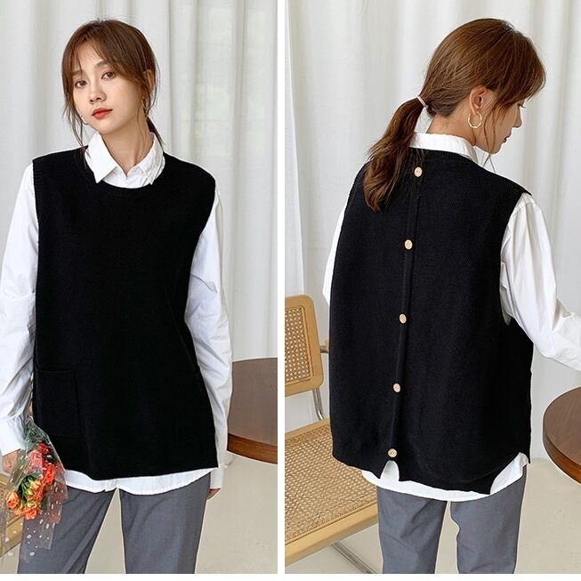 トップス ベスト ニットベスト ミディアム丈 ラウンドネック ニット 後ろ開き ボタン かわいい 大人可愛い きれいめ シンプル 上品 おしゃれ かっこいい レトロ ラフ ルーズ きちんと こなれ感 個性的 主役級 存在感 抜け感 オールシーズン ナチュラル ベーシック クール メンズライク 無地 レディース 女性用 OL 通勤 学生 通学 デート お出かけ お泊まり イベント 女子会 休日 アウトドア カフェ ショッピング レストラン コンパ レイヤード 重ね着 普段使い 着回し M L XL 2XL
