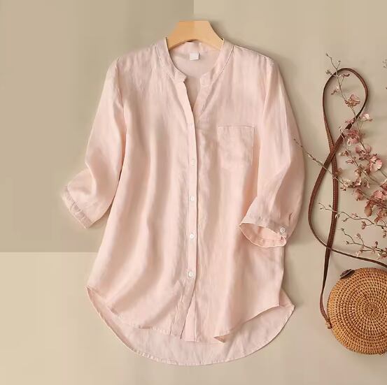 コットン シャツ レディース ブラウス 長袖 スタンドカラー 春 夏 秋 レディース 大人可愛い きれいめ シンプル カジュアル 上品 おしゃれ かっこいい こなれ感 ラフ カーキ ホワイト ピンク ネイビー M L XL