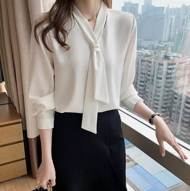 トップス シャツ シフォンシャツ ミディアム丈 プルオーバー 長袖 ボウタイ かわいい 大人可愛い きれいめ シンプル 上品 おしゃれ かっこいい レトロ ラフ ルーズ こなれ感 個性的 主役級 存在感 抜け感 オールシーズン ナチュラル ベーシック キュート クール フォーマル 無地 レディース 女性用 ママ OL 通勤 オフィス 学生 通学 デート お出かけ お泊まり イベント 女子会 休日 カフェ ショッピング レストラン コンパ レイヤード 重ね着 普段使い 着回し S M L XL 2XL