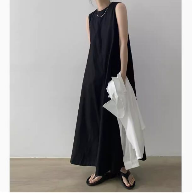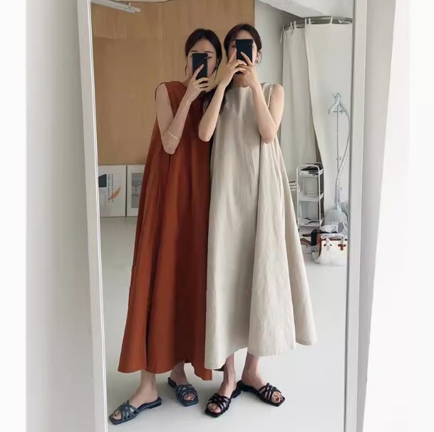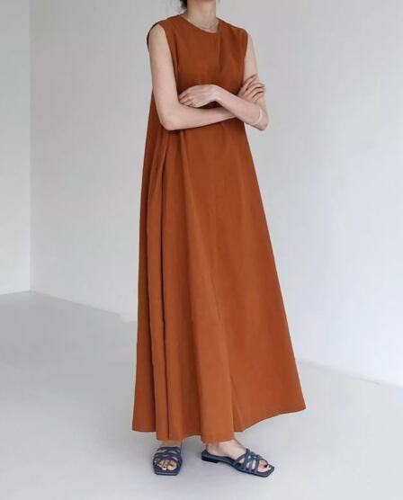 ノースリーブワンピース 袖なし ノースリーブ ラウンドネック ワイド Aライン 綿 麻 リネン シンプル カジュアル 大人 おしゃれ お洒落 無地 春 夏 20代 30代 40代 レディース 女性用 ママ マタニティ お出かけ 休日 リゾート 旅行 着回し 普段使い 重ね着 楽ちん 体型カバー S M L XL ブラウン ベージュ ホワイト ブラック