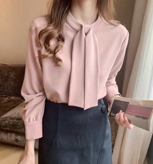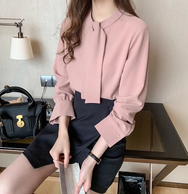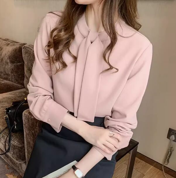 大人可愛い ボウタイブラウス ブラウス トップス レディース 長袖 シャツブラウス 大きいサイズ オフィス スーツ インナー きれいめ カジュアル S M L XL 2XL ピンク