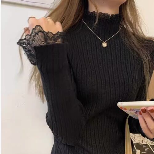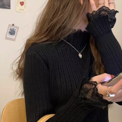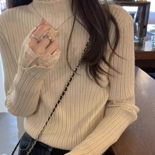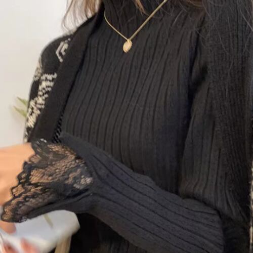 レース袖が上品なニットセーターが登場しました。ハイネックやリブニットがトレンド感満載で、秋冬のおしゃれを格上げしてくれるアイテムです。シンプルながらも、レース袖が女性らしさを演出し、通勤やオフィスシーンにもぴったり。大きいサイズ展開もあるので、どなたでも楽しんでいただけます。