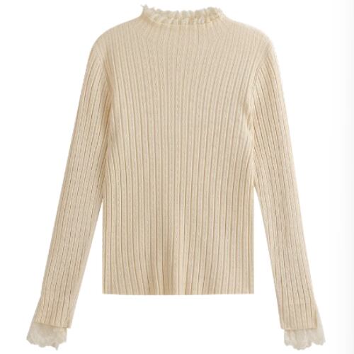 ニットセーター レディース 秋 冬 トップス 長袖 ニットソー ニットカットソー ハイネック レース袖 リブニット 通勤 OL 着痩せ 大きいサイズ おしゃれ レース レディース かわいい 大人可愛い きれいめ シンプル カジュアル 上品 おしゃれ こなれ感 ラフ ブラック アプリコット S M L XL 2XL 3XL 4XL 5XL
