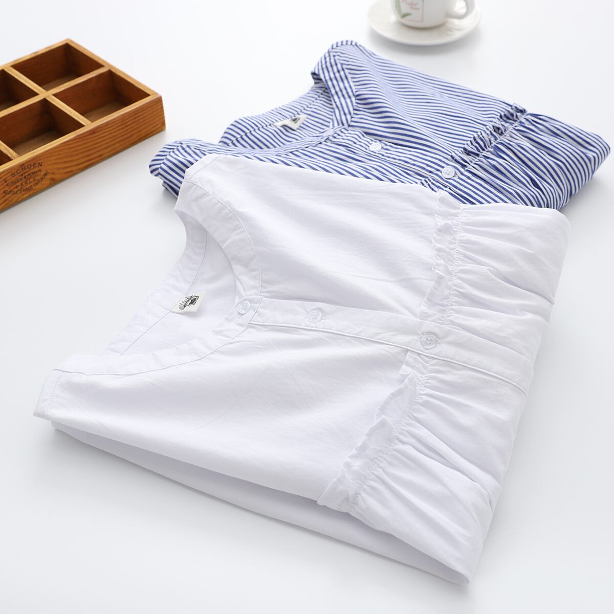 トップス シャツ ブラウス ミディアム丈 長袖ラウンドネック 前開き ボタン フリル かわいい 大人可愛い きれいめ シンプル 上品 おしゃれ かっこいい レトロ きちんと こなれ感 個性的 主役級 存在感 抜け感 オールシーズン ナチュラル ベーシック キュート クール フォーマル 無地 ストライプ柄 レディース 女性用 ママ OL 通勤 オフィス 学生 通学 デート お出かけ お泊まり イベント 女子会 休日 カフェ ショッピング レストラン コンパ レイヤード 重ね着 普段使い 着回し ワンサイズ
