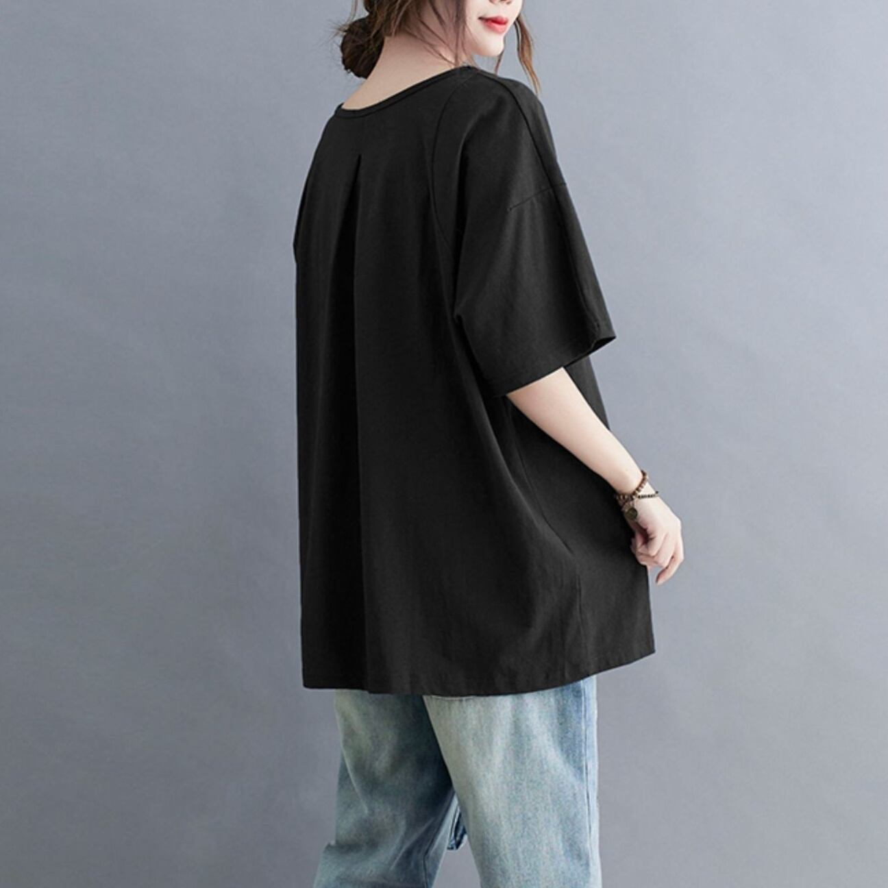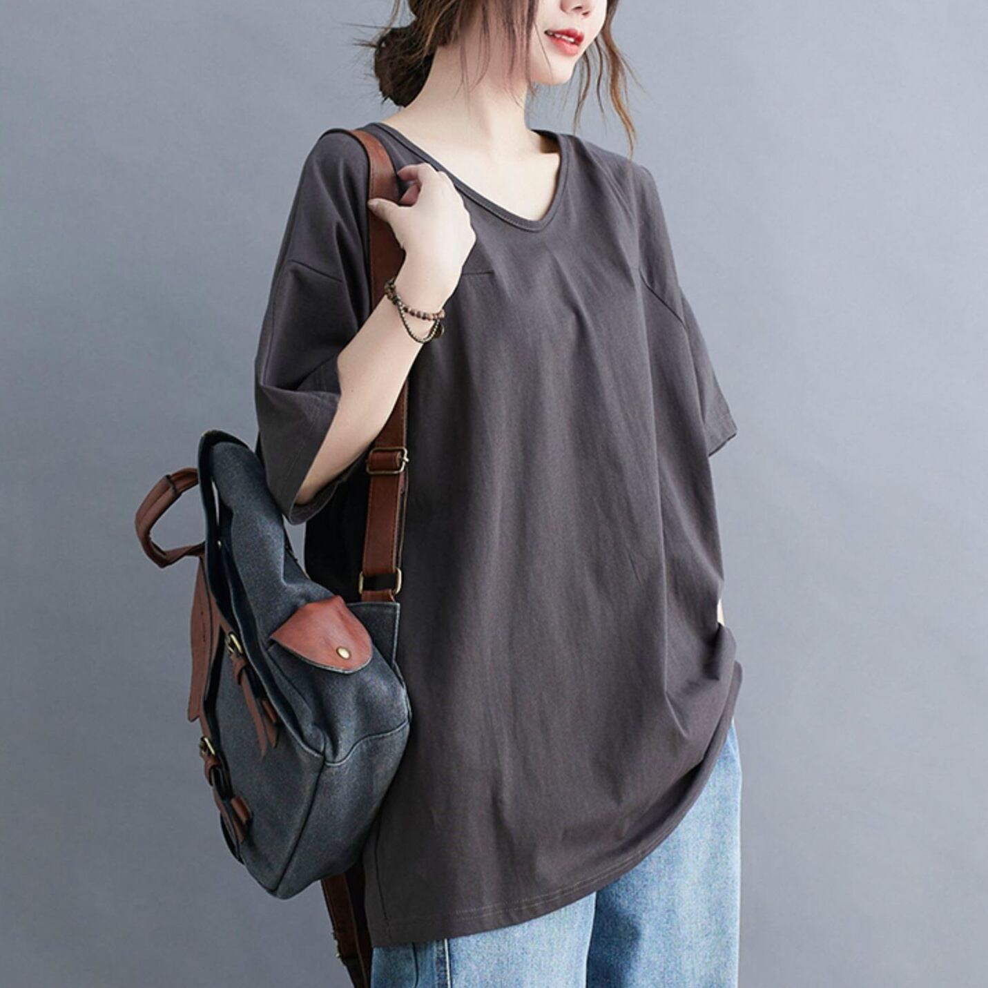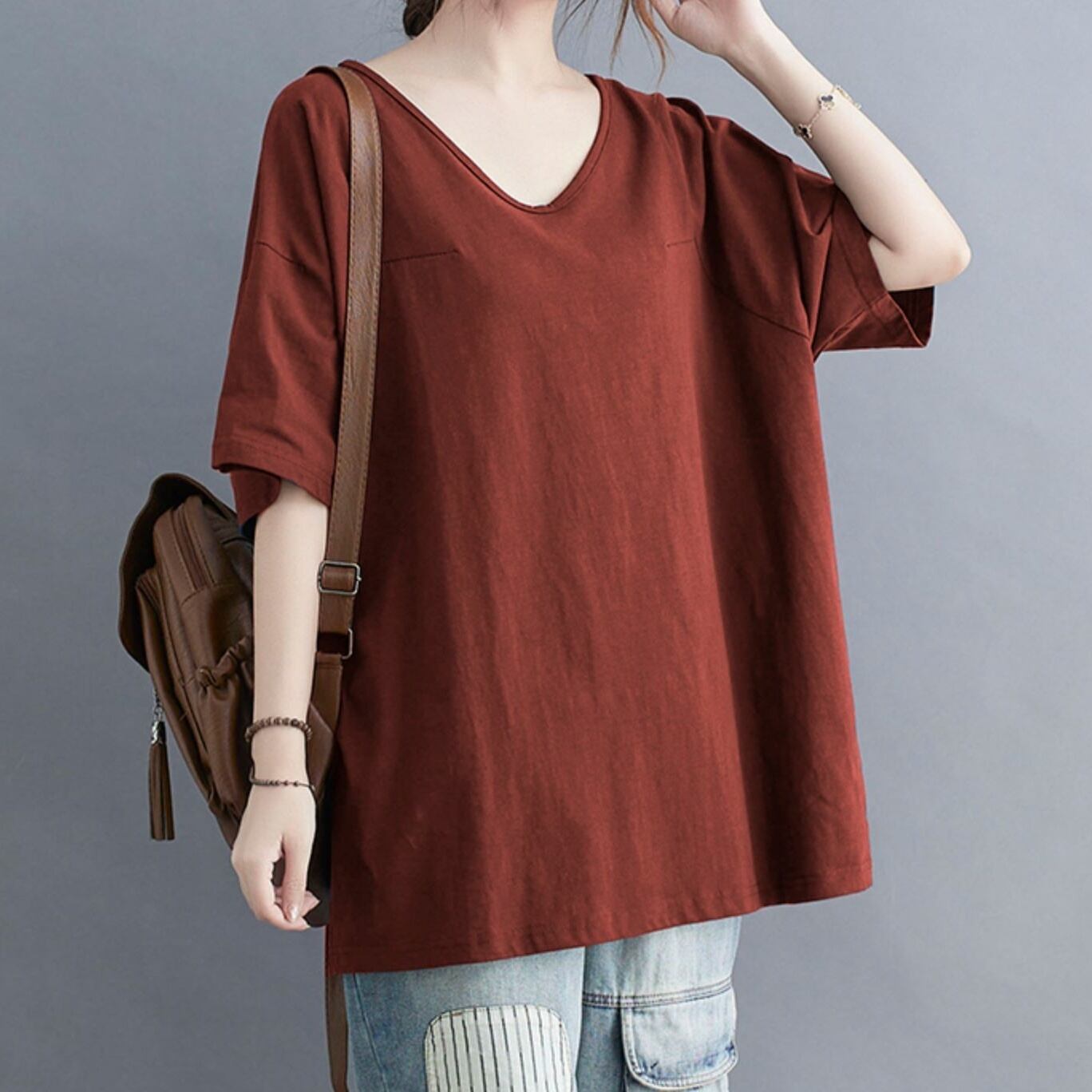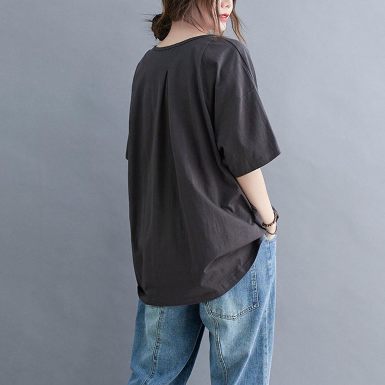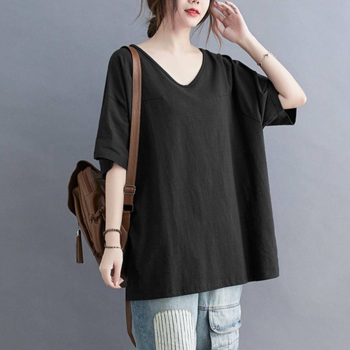 トップス カットソー Tシャツ ミディアム丈 プルオーバー 半袖 Vネック かわいい 大人可愛い きれいめ シンプル 上品 おしゃれ かっこいい レトロ きちんと こなれ感 個性的 主役級 存在感 抜け感 オールシーズン ナチュラル ベーシック キュート クール メンズライク 無地 レディース 女性用 ママ OL 通勤 オフィス 学生 通学 デート お出かけ お泊まり イベント 女子会 休日 アウトドア カフェ ショッピング レストラン コンパ レイヤード 重ね着 普段使い 着回し ワンサイズ モテ