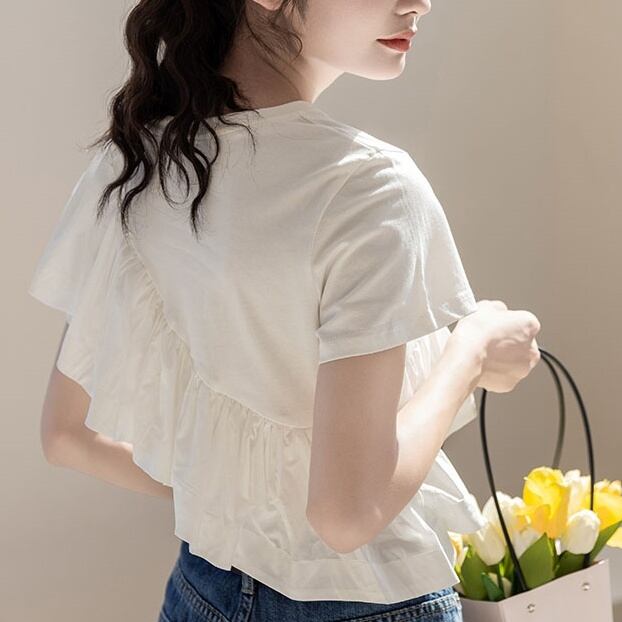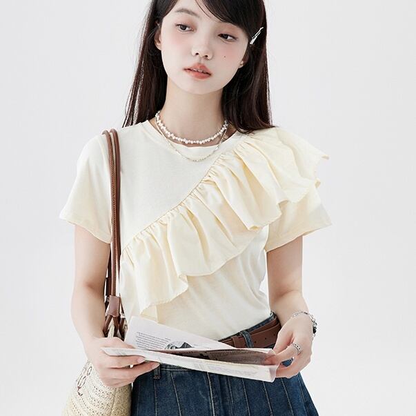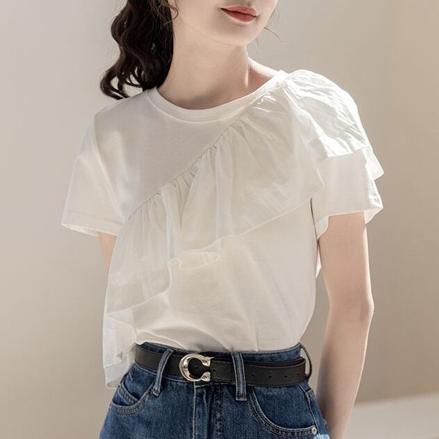 キュートで個性的なフリル付きTシャツ!
