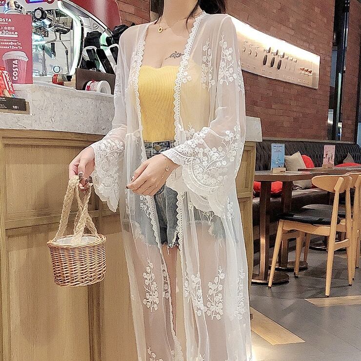 トップス シャツ ロング丈 長袖 ボリューム袖 前開き 刺繡 シースルー かわいい 大人可愛い きれいめ シンプル 上品 おしゃれ かっこいい レトロ きちんと こなれ感 個性的 主役級 存在感 抜け感 春 夏 ナチュラル ベーシック キュート ガーリー エレガント 無地 レディース 女性用 ママ OL 通勤 学生 通学 デート お出かけ お泊まり イベント 女子会 休日 旅行 リゾート カフェ ショッピング レストラン コンパ レイヤード 重ね着 普段使い 着回し S M L XL 日焼け防止
