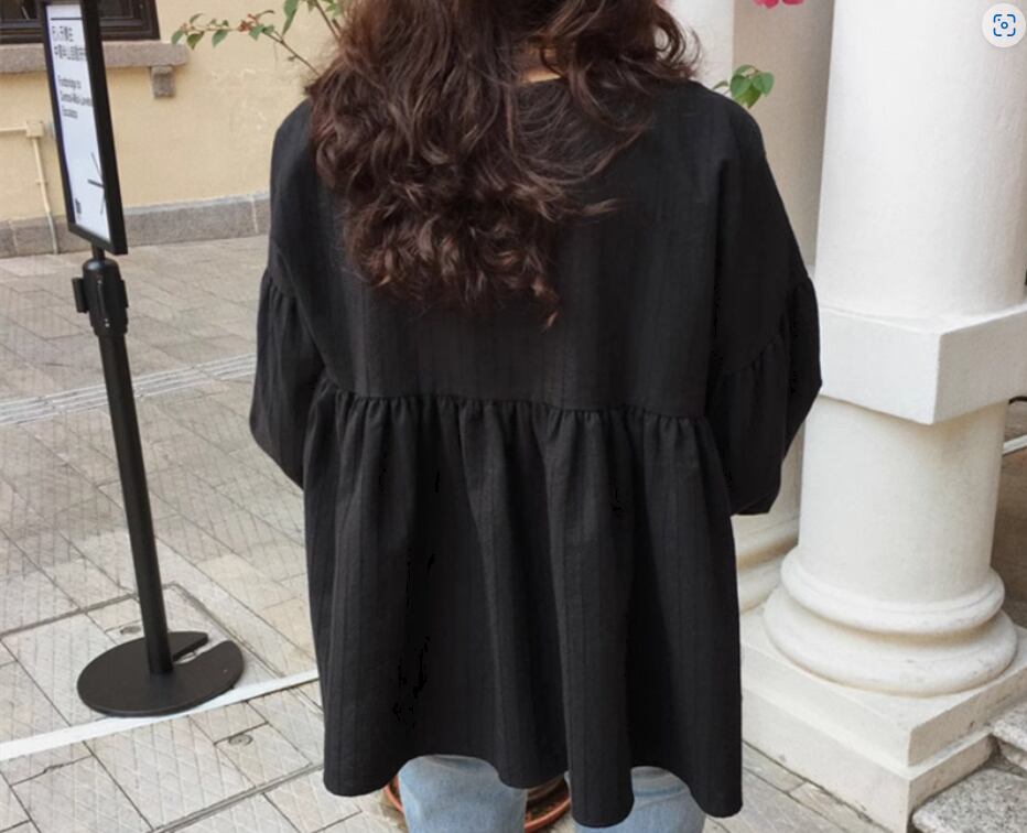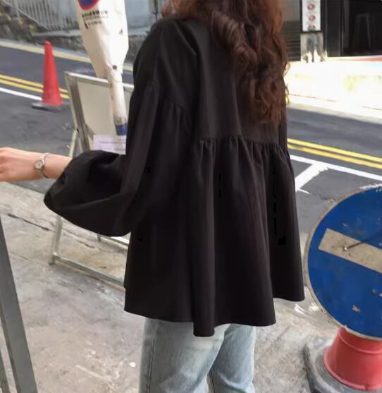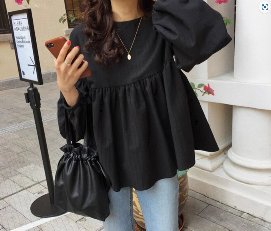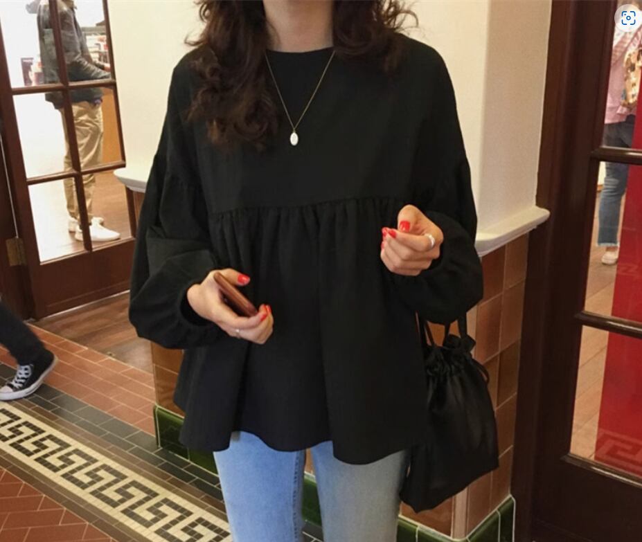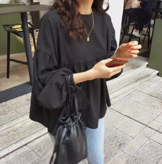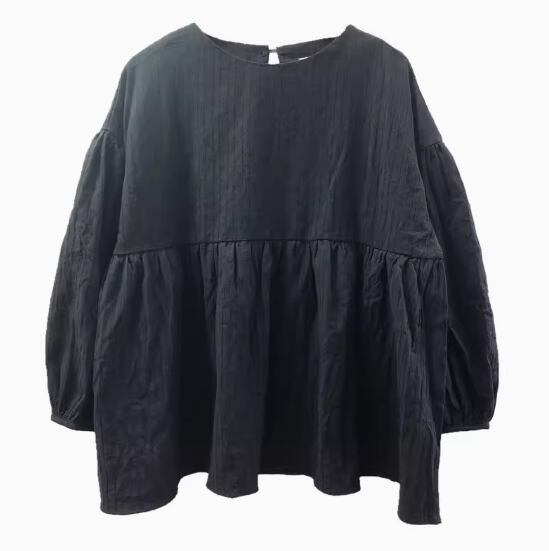 ウエストギャザー切り替えブラウス トップス プルオーバー 長袖 ボリューム袖 ドロップショルダー ラウンドネック 切り替えデザイン 綿 かわいい 大人可愛い シンプル カジュアル 大人 おしゃれ お洒落 大人女子 無地 春 夏 秋 10代 20代 30代 40代 レディース 女性用 ママ お出かけ 休日 旅行 着回し 普段使い 楽ちん S M L 黒 ブラック