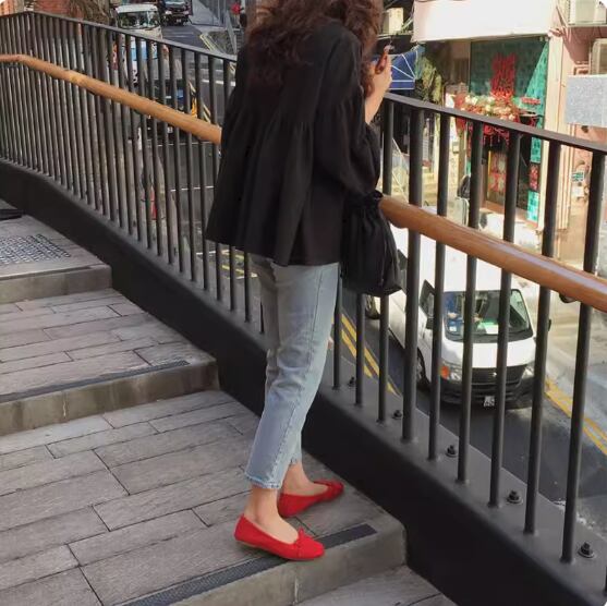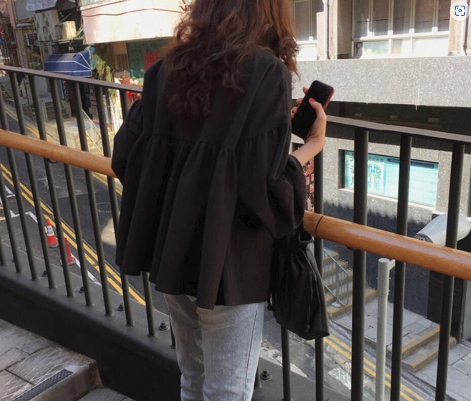控えめなボリューム袖とドロップショルダーがフェミニンな雰囲気