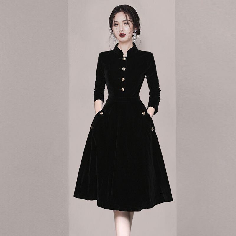 ワンピース ミディアム丈ワンピース 長袖 ハイネック ウエストマーク ミディアム丈 ベルベット ハーフボタン ポケット かわいい 大人可愛い きれいめ シンプル 上品 おしゃれ かっこいい レトロ きちんと こなれ感 個性的 主役級 存在感 抜け感 秋 冬 キュート ナチュラル ベーシック エレガント フォーマル レディース 女性用 OL 通勤 学生 通学 デート お出かけ お泊まり イベント 女子会 休日 カフェ ショッピング レストラン 旅行 リゾート コンパ レイヤード 重ね着 普段使い 着回し