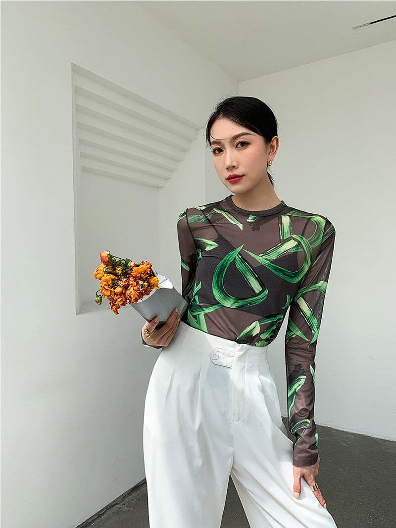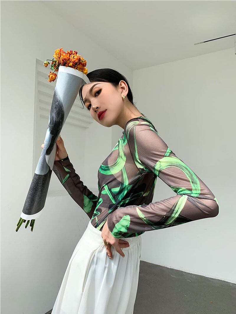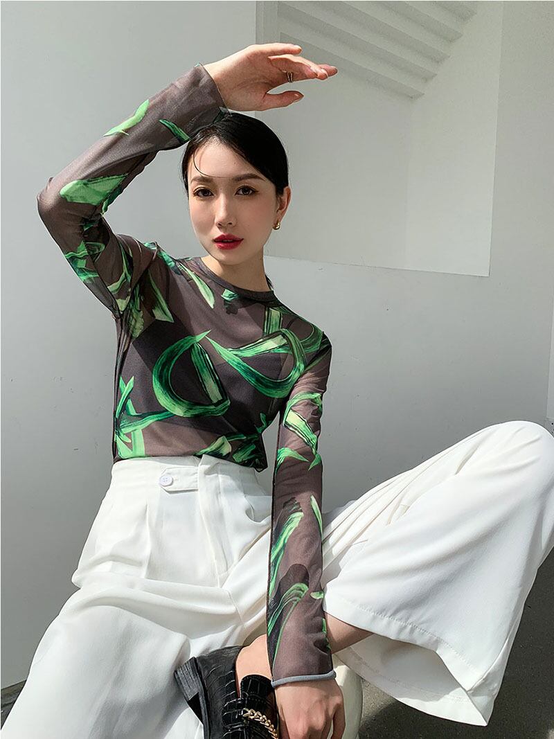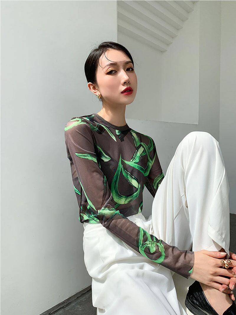 レディース トップス Tシャツ ラウンドネック スリム 細身 ストレート ストリート シースルー かわいい 大人可愛い きれいめ カジュアル 上品 おしゃれ レトロ ガーリー ラブリー キュート 花柄 夏 デート お出かけ パーティー イベント 女子会 韓国 コーデ 普段使い 着回し モテ トレンド 流行 インスタ映え フリーサイズ ブラック